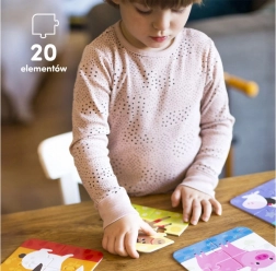 CzuCzu Puzzle Állatkák Kirakása egy öt egyszerű kirakósból álló készlet, amely ideális már kétéves gyermekek számára. Minden kirakós 4 darabból áll, ami támogatja a koordinációt és a kreatív gondolkodást.