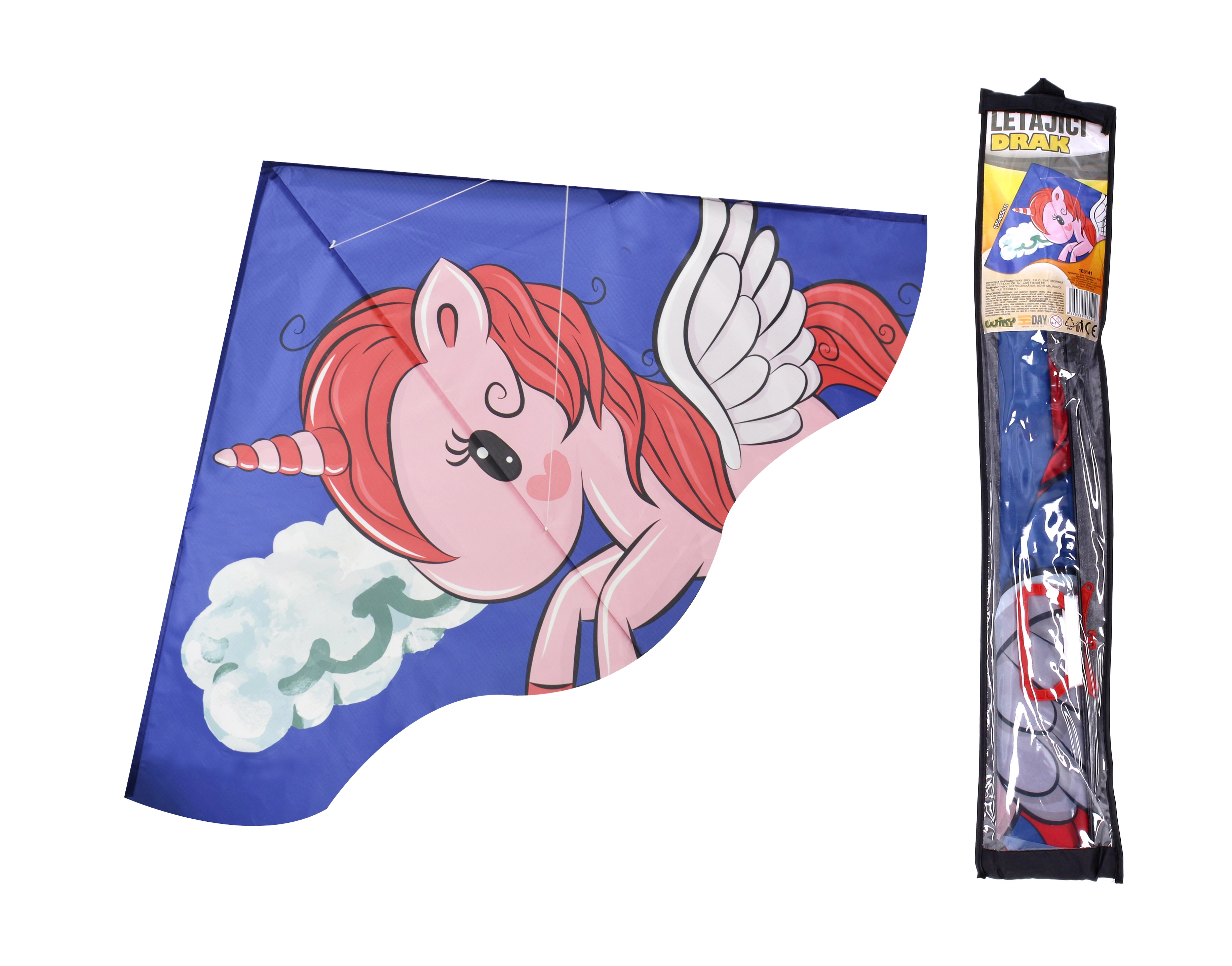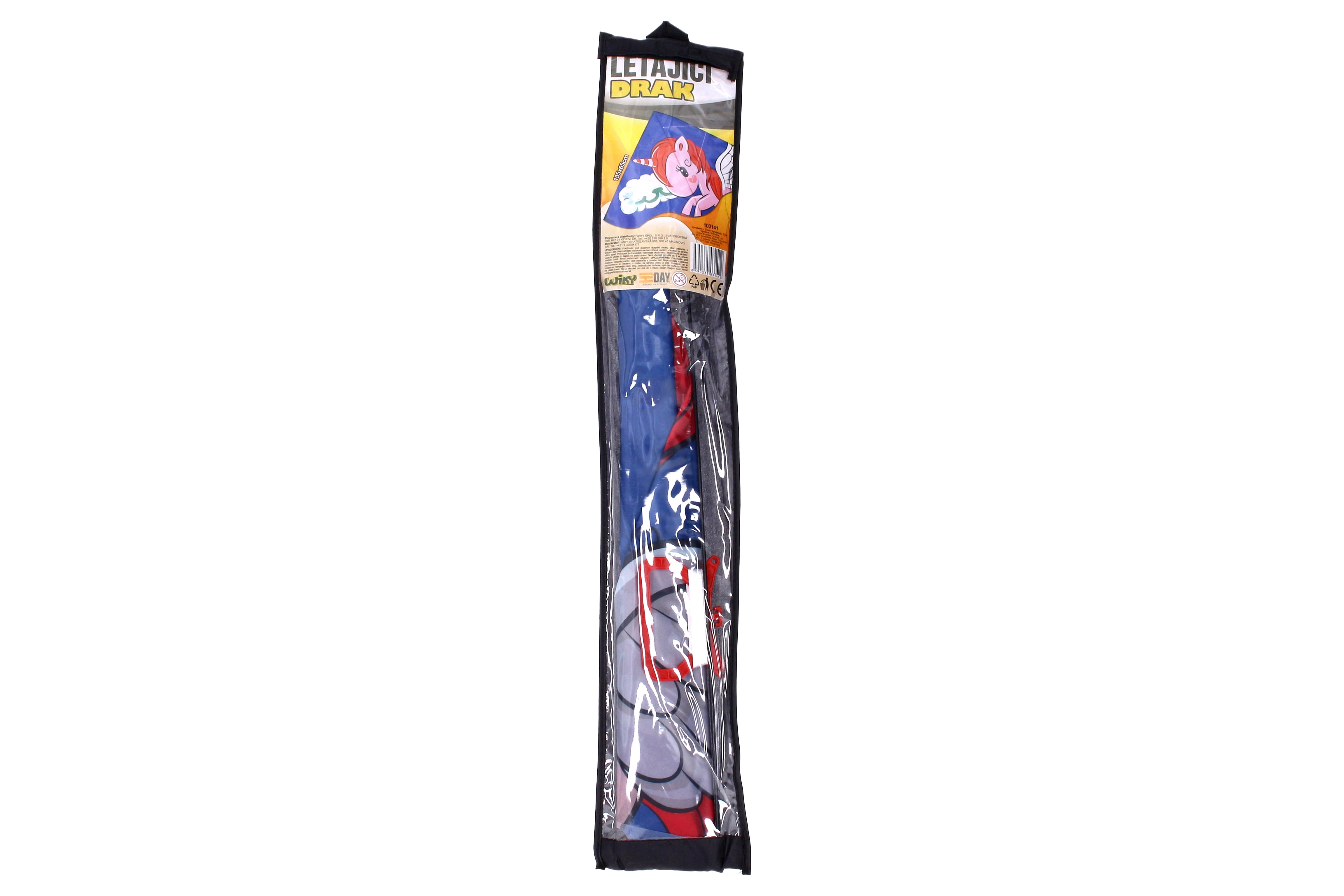 Repülő delta sárkány unikornis motívummal remek választás egy vidám, szabadban töltött naphoz. Könnyű nejlon szerkezetének és 135 x 65 cm-es méretének köszönhetően könnyen irányítható és stabil, még kezdők számára is.
