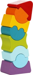 A torony építése kihívást nyújt a gyerekeknek a lekerekített elemek elhelyezésével, hogy a szerkezet stabil legyen, ugyanakkor lehetőséget ad a torony megdöntésének felfedezésére is.