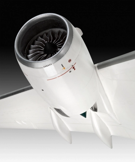 Ez a repülőgép modell valósághű részletekkel rendelkezik, beleértve a futóművet és a Lufthansa jellegzetes vállalati jeleit.