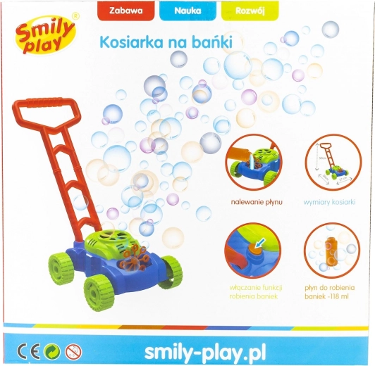 A buborékgyártó fűnyíró ideális játék gyerekeknek, akik szeretnék élvezni a szabadtéri szórakozást. A használata egyszerű: öntse a mellékelt buborékfolyadékot a fűnyíró első részén lévő tartályba, majd kapcsolja be a játék testén lévő gombbal.