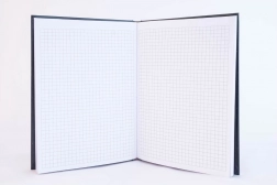A5 méretű jegyzetfüzet kemény borítóval. A fekete jegyzetfüzet elején űrtematikájú grafika található. A borító közepén puha, négyzetes, űrhajós alakú betét van. A jegyzetfüzet 80 kockás oldalt tartalmaz.