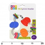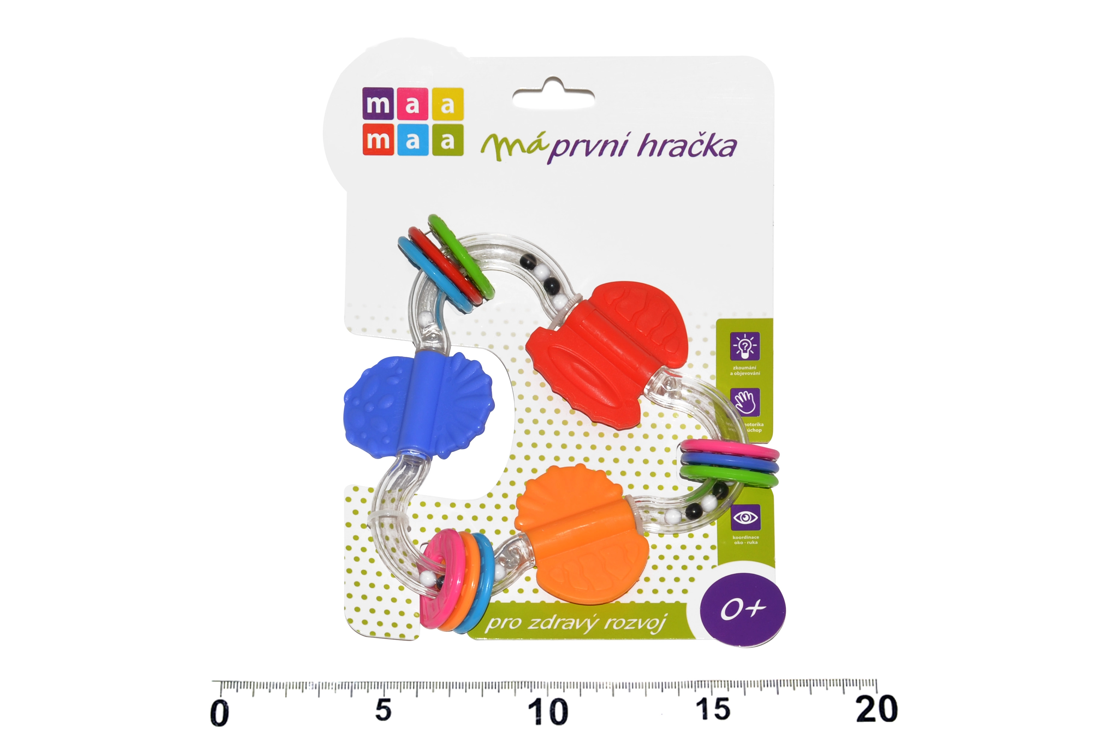 A MaaMaa márka 14 cm-es háromszög csörgője már 0+ kortól ajánlott a legkisebbeknek. Ergonomikus formájának és könnyű kialakításának köszönhetően a kis kezek számára is egyszerűen megfogható, és támogatja az egészséges pszichomotoros fejlődést. A vidám színek és a kellemes hang természetes módon stimulálják az érzékszerveket és segítenek megnyugtatni a babát.