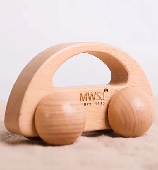 A fa autó gondosan simított, lekerekített formák ideálisak a kisgyerekek kezébe. 6 hónapos kortól ajánlott.