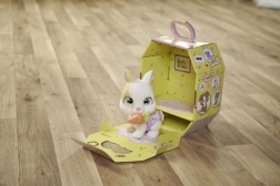 A nyuszit könnyen magaddal viheted a fogantyús papírcsomagolásnak köszönhetően, amely hordozható házikóként szolgál. Belül papírzacskókban rejtett meglepetések várnak – tematikus kiegészítők még több játékszcenárióhoz. A varázstappancs felfedi a kisállat nemét, és segít a gyerekeknek személyes kötődést kialakítani.