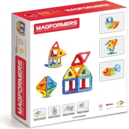 A MAGFORMERS BASIC 14 erős neodímium mágnesekkel ellátott blokkokból áll, amelyek mindig kölcsönösen vonzzák egymást. Elég a két blokk oldalát egymáshoz közelíteni, és azonnal összekapcsolódnak. A geometriai formák szerint kialakított elemekből gyönyörű, háromdimenziós építményeket hozhat létre. Játék közben használhatja a mellékelt útmutatót, a magformersworld.com oldalon található példákat, vagy a saját fantáziáját. A készlet tartalma: 8 háromszög; 6 négyzet.
