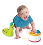 Szórakoztató csiga, amely könnyedén átalakul formázó válogatóvá és dobbá. A színes játék stimulálja az érzékeket és fejleszti gyermeke kézügyességét.