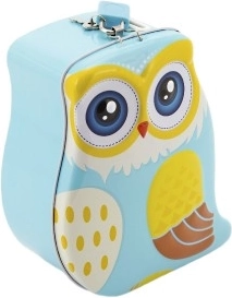 Ez a cuki, bagoly mintájú, fémből készült persely remek társ az első megtakarításokhoz. A tartós fémkivitel és a lakattal zárható megoldás segít a gyerekeknek biztonságosan elhelyezni az érméket és a kisebb bankjegyeket, miközben vidám megjelenése ösztönöz a spórolásra, és stílusos díszként is szolgál a gyerekszobában.