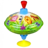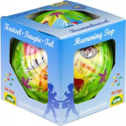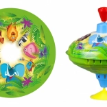 A dzsungel motívumos pörgettyűt vidám állatképek és kellemes „zümmögő” hang forgás közben teszi különlegessé. Ideális első játékokhoz, segít megérteni az ok-okozati összefüggéseket és támogatja a koncentrációt. Az alsó tapadókorong jobb stabilitást és biztonságosabb játékot biztosít különböző felületeken.