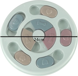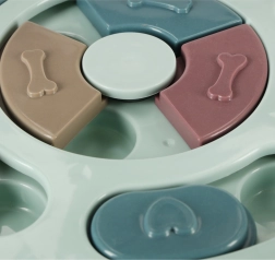 Ezt a tálat úgy tervezték, hogy etetés közben a kutya lelassítson, és használja az orrát és az eszét. A csúsztatható részek eltakarják a jutalomfalatokat és a tápot, így az orrával vagy mancsával kell ügyeskednie. Ez természetes módon meghosszabbítja az étkezési időt, csökkenti a puffadás kockázatát, és támogatja az egészséges étkezési szokásokat.
