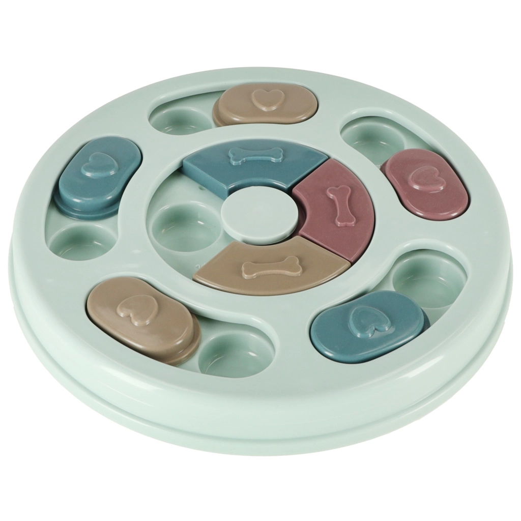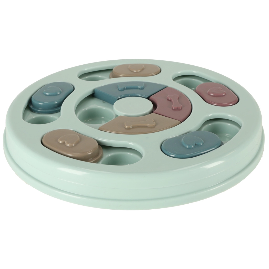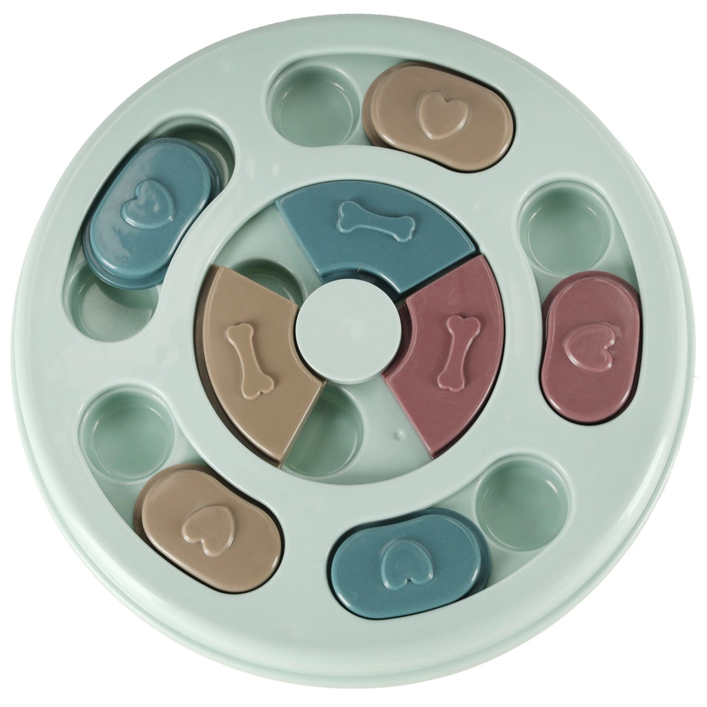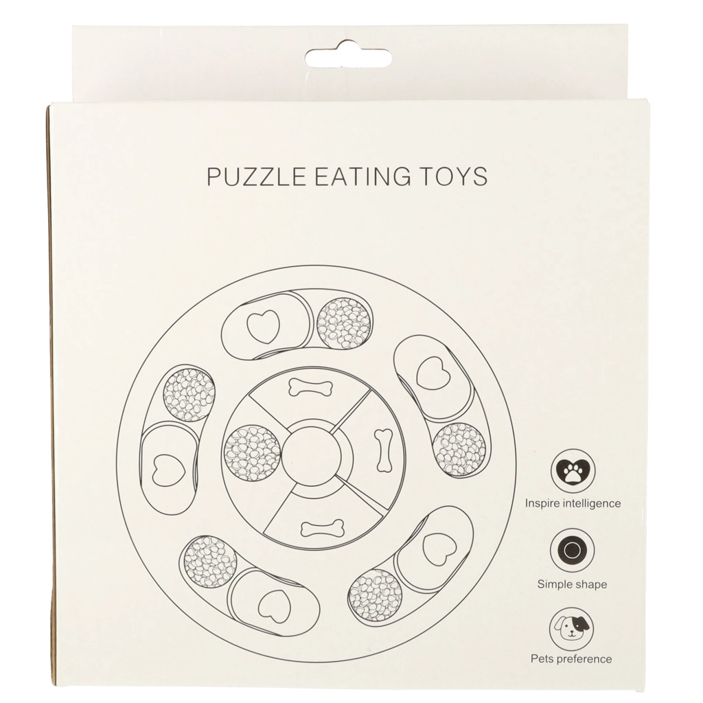 Interaktív, etetést lassító kutyatál. Fejtörő csúsztatható elemekkel, csúszásgátlóval, műanyagból, 24 cm átmérővel. Egészségesebb és szórakoztatóbb etetés.