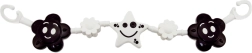 A fekete-fehér, virágos és csillagos függődísz felkelti a baba figyelmét és lefoglalja séták közben. Könnyű rögzítés kampókkal babakocsira vagy kiságyra.
