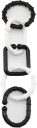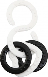 Összekapcsolható szilikon gyűrűk domború mintával finoman masszírozzák az ínyt, fejlesztik a tapintást és könnyű megfogást biztosítanak. S-kampók a játékok babakocsihoz vagy autósüléshez való rögzítéséhez.