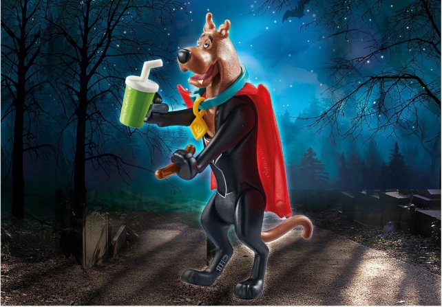Scooby most nem fél – felvette a köpenyét és vámpírrá változott, hogy elűzze a gonosz szellemet. A részletgazdag figura és a tematikus kiegészítők számtalan történetet kínálnak, és támogatják a fantáziát és a szerepjátékot.
