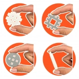 A biztonságos, kellemes és enyhén rugalmas anyag tapintása komfortos, és bírja a mindennapos játékot. A készlet masszív kartondobozban kapott helyet, tartalmaz útmutatót az első ötletekhez, valamint egy speciális mosogatógépes zsákot, hogy az építőelemek mindig tiszták legyenek. Remek választás önálló és közös játékhoz egyaránt.