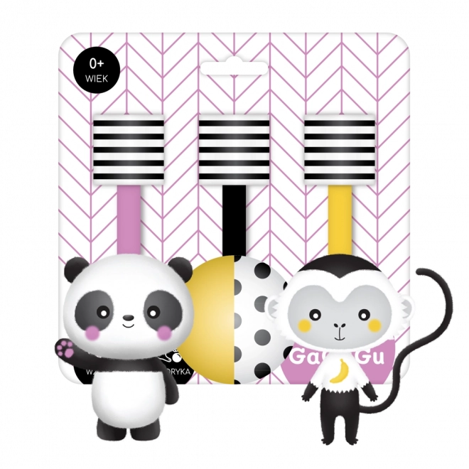 Felfüggesztett kontrasztos plüss játék - majom, panda, labda