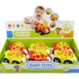 A műanyag autó úgy lett tervezve, hogy felkeltse a gyerekek figyelmét vidám színeivel<\strong> és csörgő hangjaival<\strong>, amelyeket a belső golyó okoz. A puha és lyukas tetőnek<\strong> köszönhetően könnyen fogható még a legkisebbek számára is.