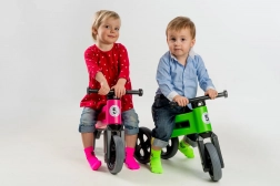 A FUNNY WHEELS Rider Sport 2 az 1-ben egy cseh futóbicikli, amely alkalmazkodik a gyermek életkorához és készségeihez. Kezdd a stabil háromkerekű verzióval, majd könnyen válts a kétkerekű kivitelre az egyensúly gyakorlásához. Tartós, egészségre ártalmatlan műanyagból készül, és a csendes abroncsoknak köszönhetően otthonra és a járdára is megfelelő.