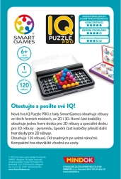 Okos szórakozás zsebméretben: a SMARTGAMES IQ PUZZLER PRO 120 feladványt kínál 2D-ben és 3D-ben. A kompakt, utazós dobozban fejleszti a logikát, a térbeli képzelőerőt és a tervezést – ideális egy játékosnak bármikor, bárhol.