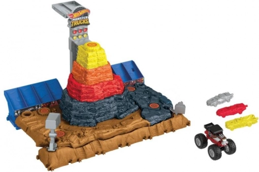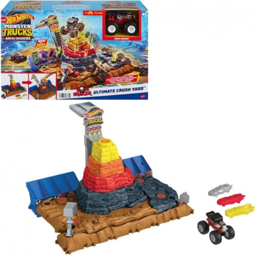 Fedezd fel a Hot Wheels Monster Trucks Aréna Bone Shaker Finálé játékkészletét, lenyűgöző rombolási élménnyel a gyerekek számára, izgalmas töréshelyekkel és speciális remegő hatásokkal.