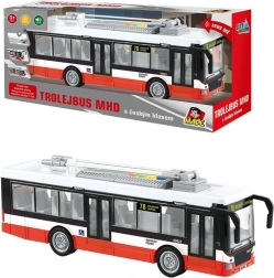 Ez a részletgazdagon kidolgozott trolibusz autentikus városi közlekedési élményt nyújt a gyerekeknek. A játék cseh nyelvű megálló-bejelentéseket játszik le (Főpályaudvar, Városi színház, Állatkert), és látványos fényhatásokkal van kiegészítve. A lendkerekes hajtásnak köszönhetően elég meglökni, és előreindul.