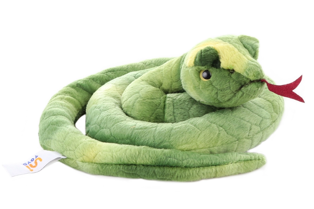 Ez a zöld plüss kígyó gyengéd ölelést és rengeteg fantáziát hoz a gyerekek életébe. Kellemesen puha, babák számára is biztonságos, és méreteinek köszönhetően kényelmesen tartható a kézben. Az élethű részletek, mint a piros, villás nyelvecske és a finom „pikkelyes” textúra, kedvenc társsá teszik a kiságyban és a babakocsiban is.