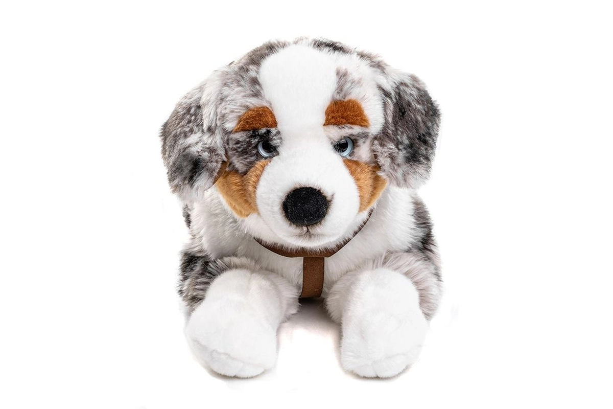 Ez a plüss ausztrál juhászkutya elbűvöl hű részleteivel, finom szőrével és kellemes, ölelni való méretével. Puha, ölelgethető és a legkisebbek számára is biztonságos. A csomag része a hám, amellyel kis gondozója képzeletbeli sétákra viheti kutyus barátját.