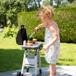 A kerekeknek köszönhetően a grillsütő könnyedén mozgatható, így a gyerekek dönthetnek úgy, hogy a kertben vagy a lakásban játszanak.