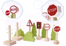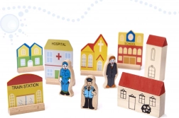 A készlet minden darabja minőségi fából készült, lekerekített sarkokkal, ami biztosítja a biztonságot és tartósságot a játék során.