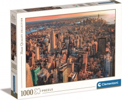 A puzzle a híres New York City panorámaképet jeleníti meg naplementekor, ideális az urbanisztikai szépségek szerelmeseinek.