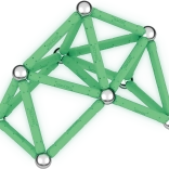 A GEOMAG Glow egy eredeti mágneses építőkészlet, amely lehetővé teszi, hogy mágneses rudak és acél golyók segítségével végtelen számú konstrukciót hozz létre. A foszforeszkáló elemeknek köszönhetően a modellek megvilágítás után a sötétben gyönyörűen ragyognak – ideális a szórakoztató kísérletezéshez és a látványos bemutatókhoz.