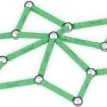 - 20 világító mágneses rúd, 20 acél golyó, 2 stabil talapzat (négyzet és ötszög) fekete színben