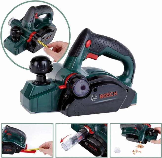 A gyalu a valódi BOSCH szerszámot utánozza – fény- és hangeffektekkel, valamint biztonságosan forgó hengerrel a hiteles játékélményért.