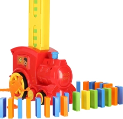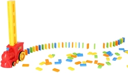 Ez a színes mozdony kockaadagolóval magától rakja le a dominót szabályos távolságokban, és minden lerakást hanggal jelez. A gyerekek a kémény elforgatásával könnyedén megválaszthatják a haladási irányt, így változatos útvonalakat és mintákat hozhatnak létre. A élénk színek és a figyelemfelkeltő dizájn lekötik a figyelmet és hosszú időre motiválnak a játékra.