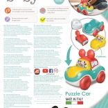 Összeállítható kisautó Disney motívummal, ideális a logikai készségek és a mozgáskoordináció fejlesztésére 12 hónapos kortól.