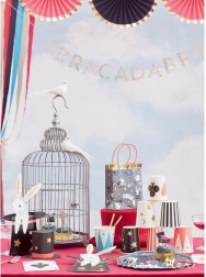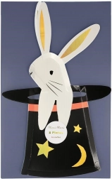 Fedezze fel a varázslatos Abrakadabra papírtányérokat a MERI MERI márkától, amelyek mágikus show-vá változtatják az ünneplést. A cilinderből kikandikáló nyúl motívuma lenyűgözi a gyerekeket és a felnőtteket egyaránt, és remekül illik bűvész vagy cirkusz témájú party dekorációhoz. Gondos kivitelének és látványos megjelenésének köszönhetően a tányérok nemcsak praktikusak, hanem dekoratívak is.