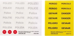- Fotolumineszcens matricákkal szállítva, amelyek több nyelven figyelmeztetnek a veszélyre.