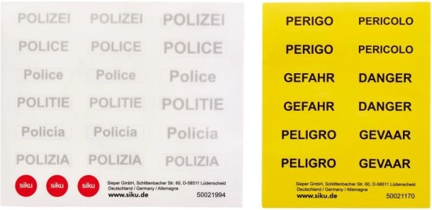 - Ezüst-kék oldalfelületek sárga figyelmeztető csíkokkal, további rendőrségi matricákkal személyre szabhatók.