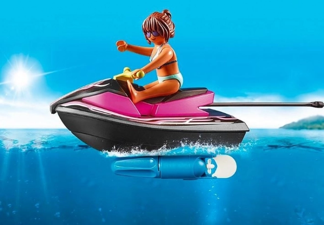 A vízi robogó kiegészíthető Playmobil merülő motorral (külön kapható), amely lehetővé teszi a gyorsabb úszást a víz felszínén.