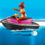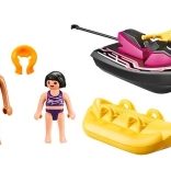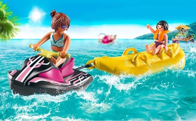 A csomagban két figura, nő és lány található, akik együtt fedezik fel a vizet a vízi robogón és a banánhajón. A lány védőmellényben van, amely biztosítja a biztonságát a vad utazás során. A készlet nagyszerű bevezetés a lenyűgöző Playmobil Family Fun világába.
