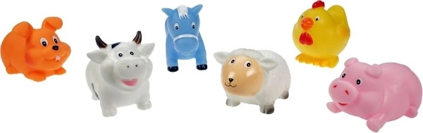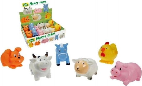 Fedezze fel a fürdés és a szárazföldi játék örömét a vidám tanya gumis vízsugaras állatkáinak segítségével. A kellemesen puha anyagnak köszönhetően könnyen nyomkodhatók, barátságos megjelenésük és egyszerű használatuk miatt a gyerekek imádni fogják őket. A játék a legkisebbek biztonságát szem előtt tartva készült.