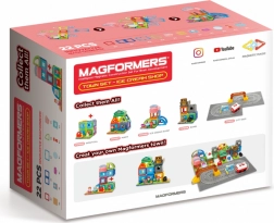 A Magformers Városka Cukrászda építőkészlet 14 mágneses formából és 8 funkcionális kiegészítőből áll. Lehetővé teszi, hogy különféle építészeti megoldásokat hozzon létre a cukrászdák valósághű modelljeivel a saját fantáziája szerint. További Magformers darabok hozzáadásával az építmények még nagyobbak és változatosabbak lesznek. Az eredmények félig nyitott keresztmetszetű formát öltenek, amelyben látható a külső és belső megoldás, amelyeket variálni lehet.