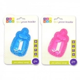 A praktikus, cumisüveg alakú hűsítő rágóka azonnali megkönnyebbülést nyújt a fogzás idején. Puha, biztonságos anyagból készült, és ártalmatlan hűsítő géllel van töltve. Hűtőben lehűtve hatékonyan csökkenti az íny duzzanatát és fájdalmát, miközben stimulálja a tapintást és a látást. Két színben érhető el – kék és rózsaszín.