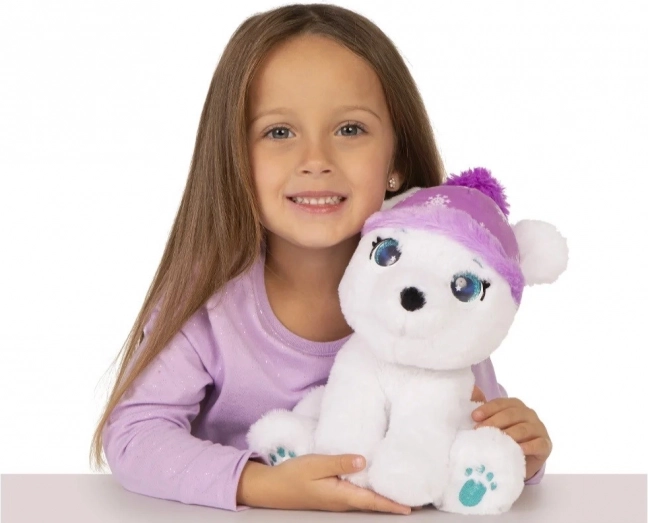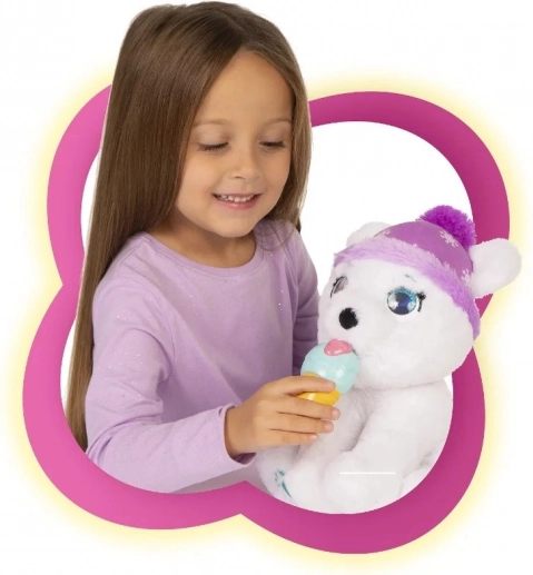 Polus egy interaktív jegesmedve, aki nagyon aranyos. Puha, kellemes plüssből készült, és bájos, csillogó kristályszerű szemei vannak. 10 féle hangot ad ki! Miután megeszi a készletben található fagyit, rosszul lesz és reszket a hidegtől. Gondoskodj róla és simogasd meg, és máris jobban fogja érezni magát!