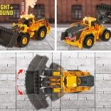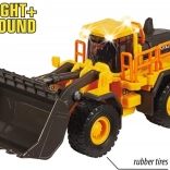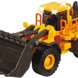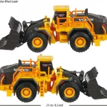 Licencelt VOLVO rakodó motor nélkül, fény- és hangfunkcióval. A fülke fémből készült. A puha gumigumik könnyedén megbirkóznak az építkezés nehéz terepével. Mozgatható elemek: nyitható hátsó ajtók, kanál és fülke; a kormányzásnak köszönhetően a jármű könnyen fordul jobbra és balra. Hossz: 21 cm.