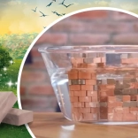 - Valódi, kiégetett téglák, igazi fa, karton elemek, dekoratív fű és vörös moha