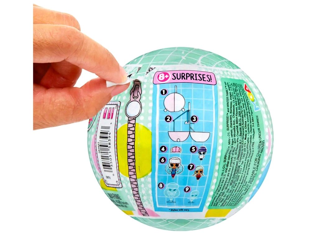 Minden gömb 8 kiegészítőt és meglepetést rejt. A „cipzáras” nyitás minden kibontásnál vidám és izgalmas élmény.