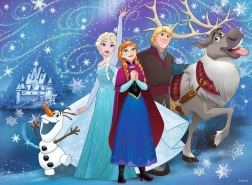 - Puzzle a Jégvarázs film motívumaival és csillámló elemekkel