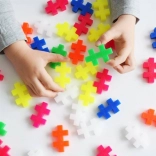 Ez a neon kiadás kiváló otthoni játékhoz, óvodákba és gyereksarkokba is. A készlet támogatja az önálló játékot és a csoportos együttműködést, és az elemek univerzális formájának köszönhetően nincs szükség bonyolult útmutatóra – elég a fantázia.