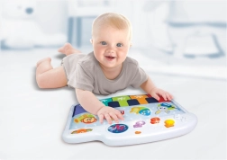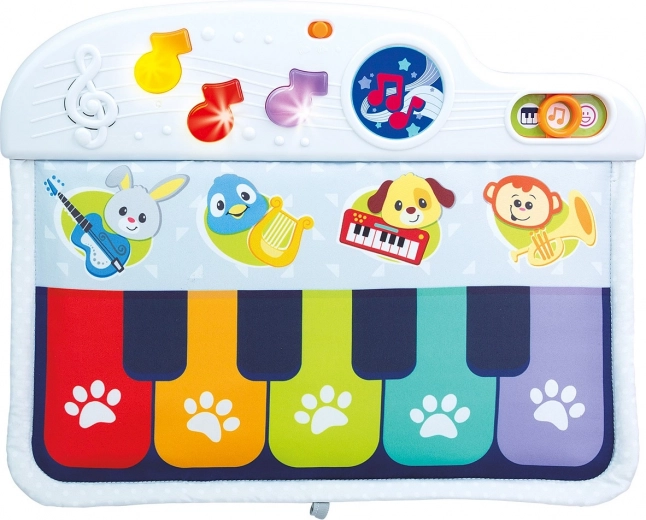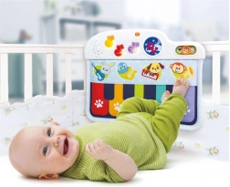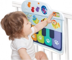 A kiságyra szerelhető zongora úgy lett tervezve, hogy biztonságos és puha legyen, miközben kellemes hangokat ad ki, amelyek felkeltik a gyermek figyelmét. A gyermek játszhat a kiságyban ülve vagy fekve is, a színes hangjegyek lábbal történő megnyomásával. Ez a játék három játékmódot kínál, lehetőséget biztosítva a zongora hangjának és további három hangszer: gitár, hárfa vagy trombita hangjának választására.